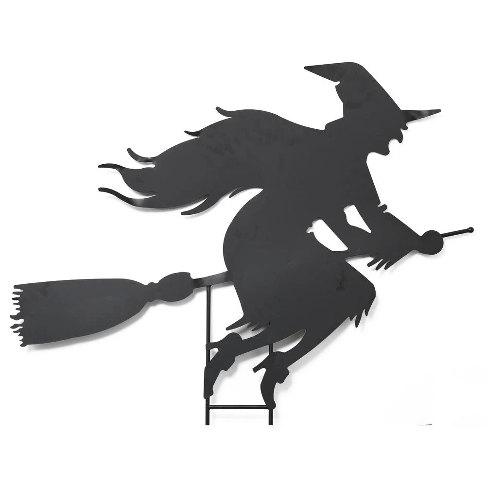 - Cast scary shadows across your yard with this flying witch on a broom, metal silhouette yard stake measuring 43.5 in. L