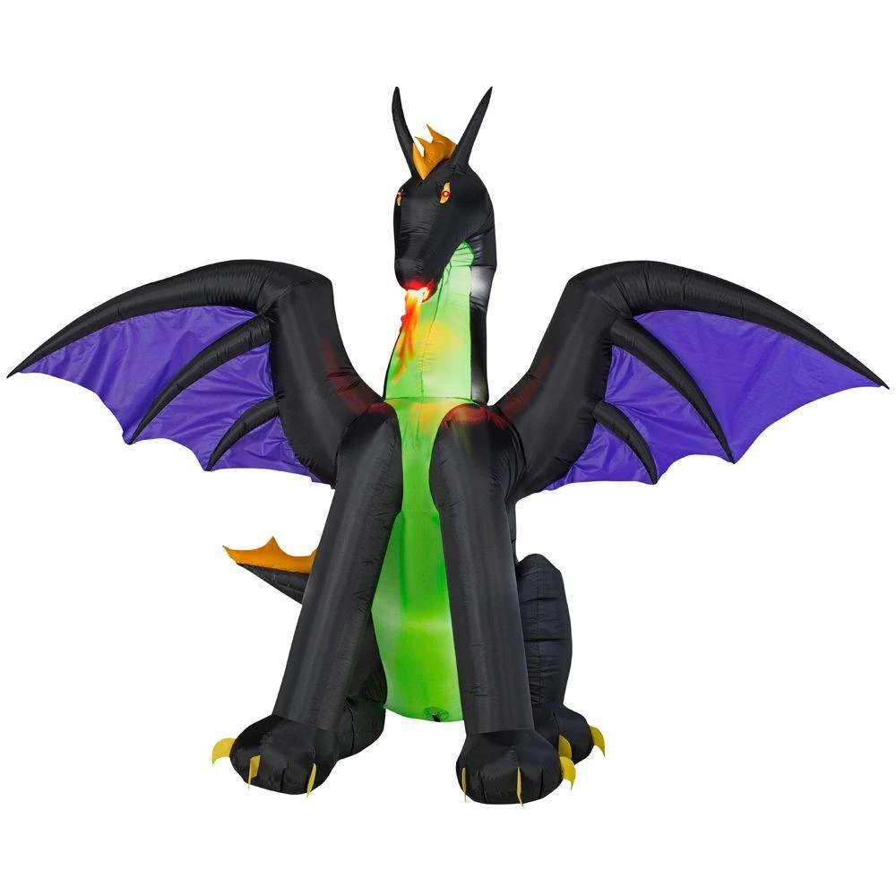 Pump up your yard decorations with this animated dragon inflatable. It is super easy to set up. Just plug it in, stake it down and enjoy a festive scene on your lawn. It’s 6 feet tall with a generous wing span and flaming mouth to scare your little goblins on Halloween.